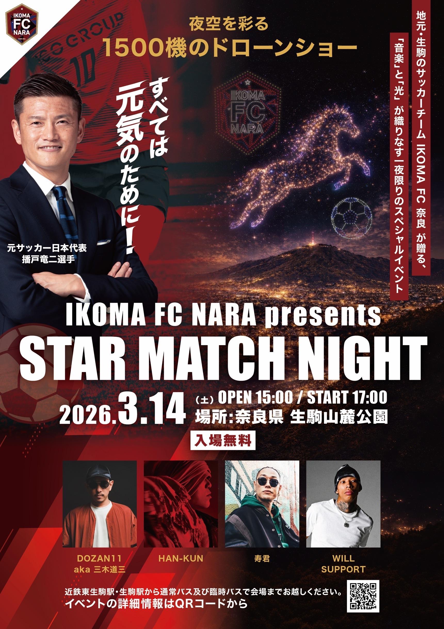 2026年3月14日(土)「IKOMA FC NARA presents STAR MATCH NIGHT」出演決定!